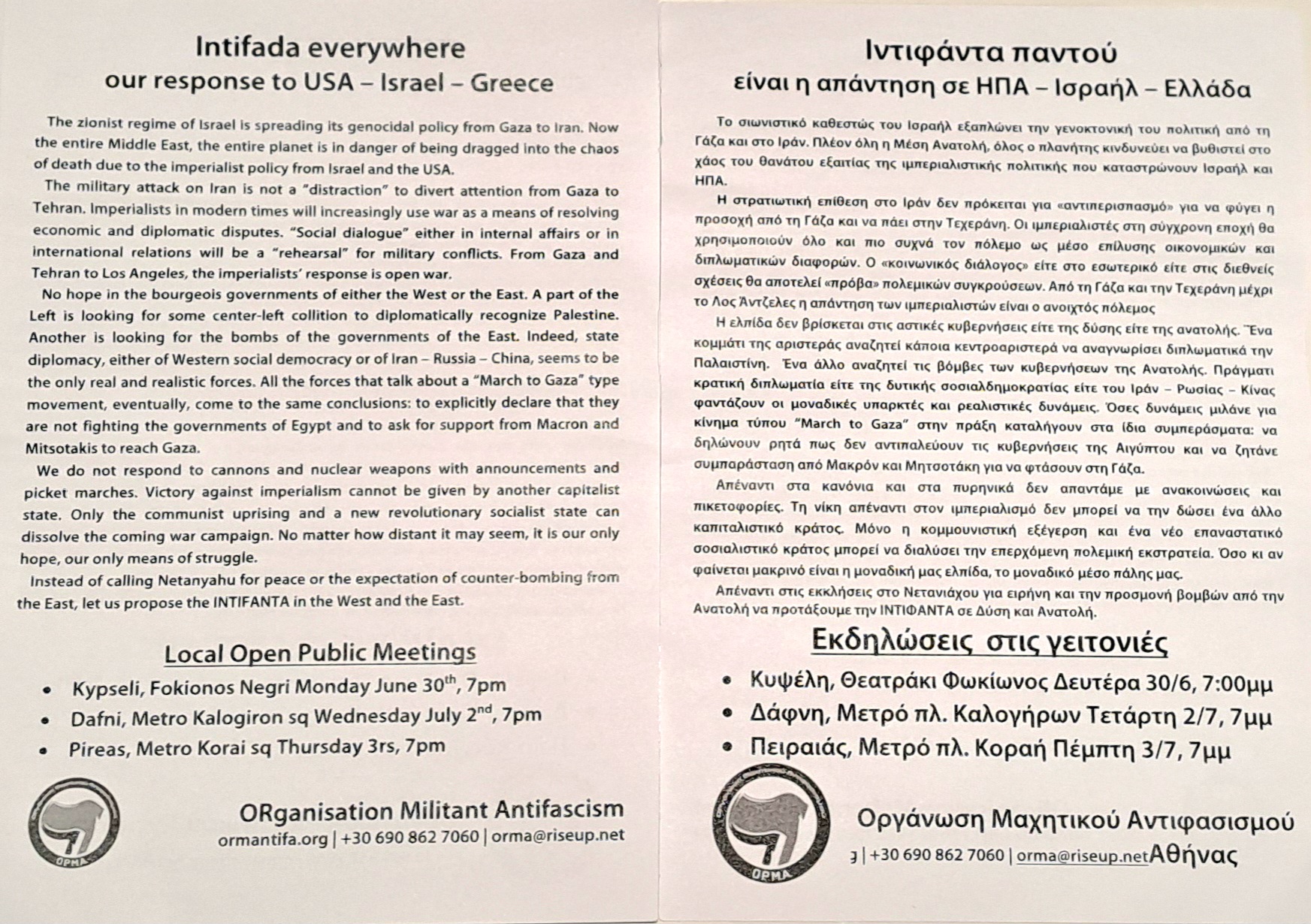 Από μεριάς μας καλέσαμε σε συμμετοχη απόψε στην αντιπολεμική διαδήλωση στις 7μμ στο Σύνταγμα.