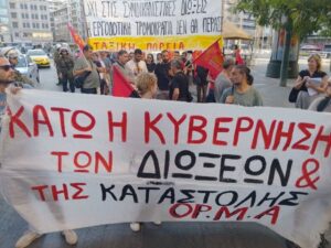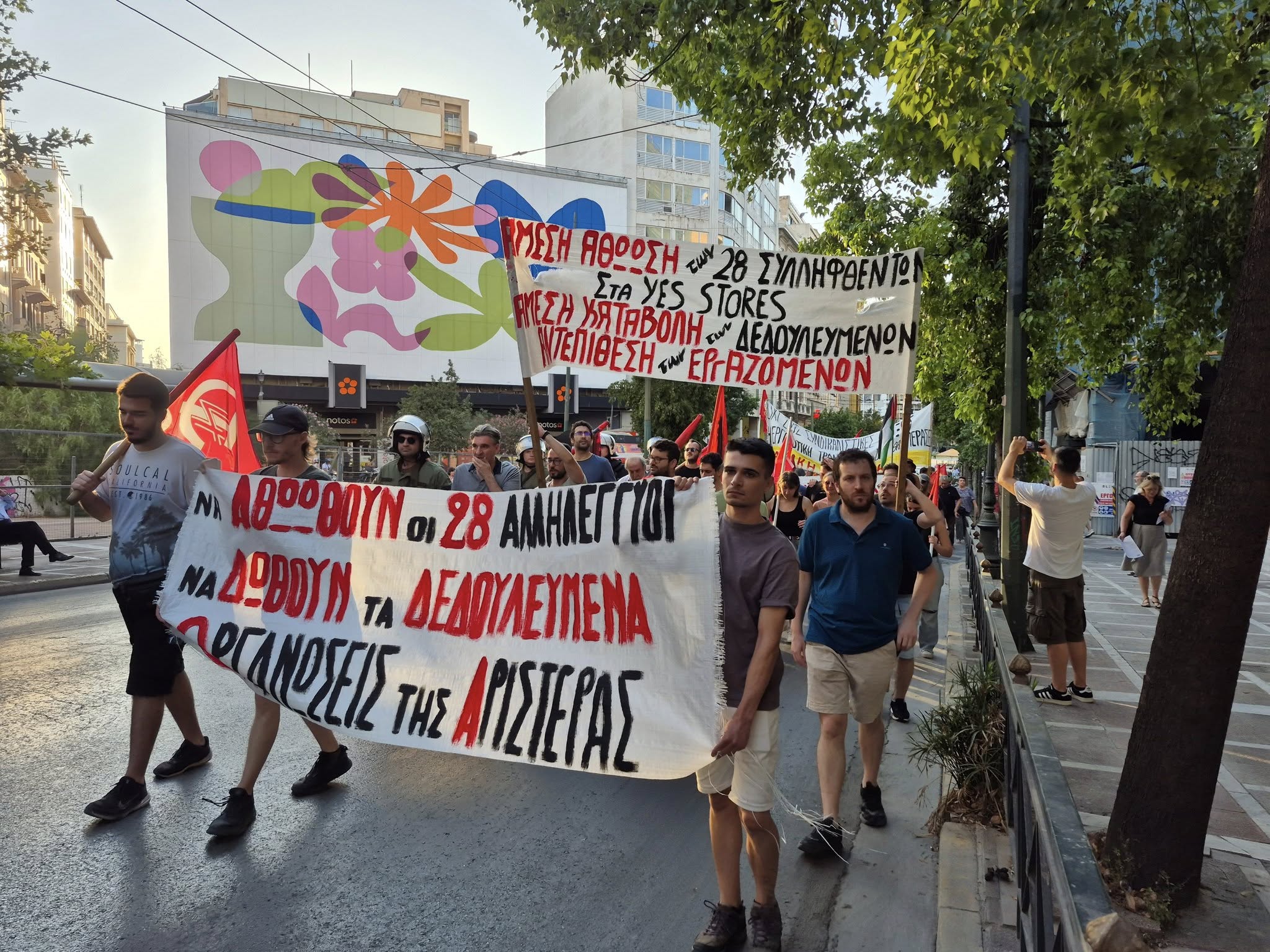 Την Πέμπτη 09/07 συμμετείχαμε στη διαδήλωση στο κέντρο της Αθήνας, ενάντια στην επίθεση της κυβέρνησης προς όσους αγωνίζονται και σε ένδειξη αλληλεγγύης προς . Οι συλλήψεις έγιναν μετά από κινητοποίηση που πραγματοποιήθηκε σε κατάστημα της αλυσίδας “Yes”, όπου οι αγωνιστές διεκδικούσαν τα δεδουλευμένα συναδέλφου τους.