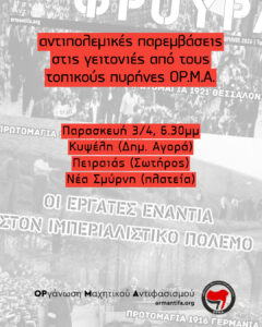 Για την ανατροπή της κυβέρνησης του πολέμου να φτιάξουμε αντιπολεμικές επιτροπές σε κάθε γειτονιά – σε κάθε εργασιακό χώρο – σε κάθε σχολείο/πανεπιστημιακό χώρο – σε κάθε στρατόπεδο! Για τη διεθνιστική αλληλεγγύη και την συμφιλίωση των λαών!