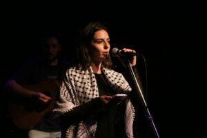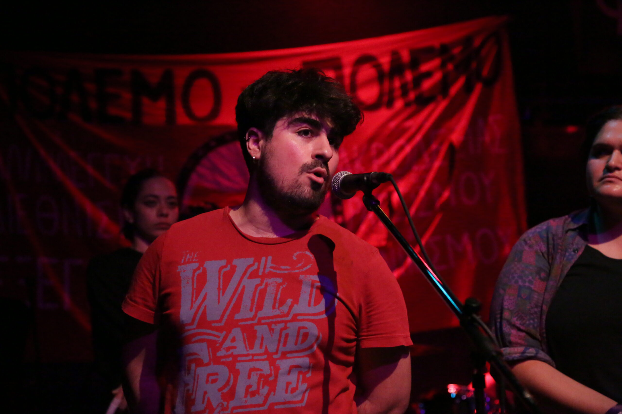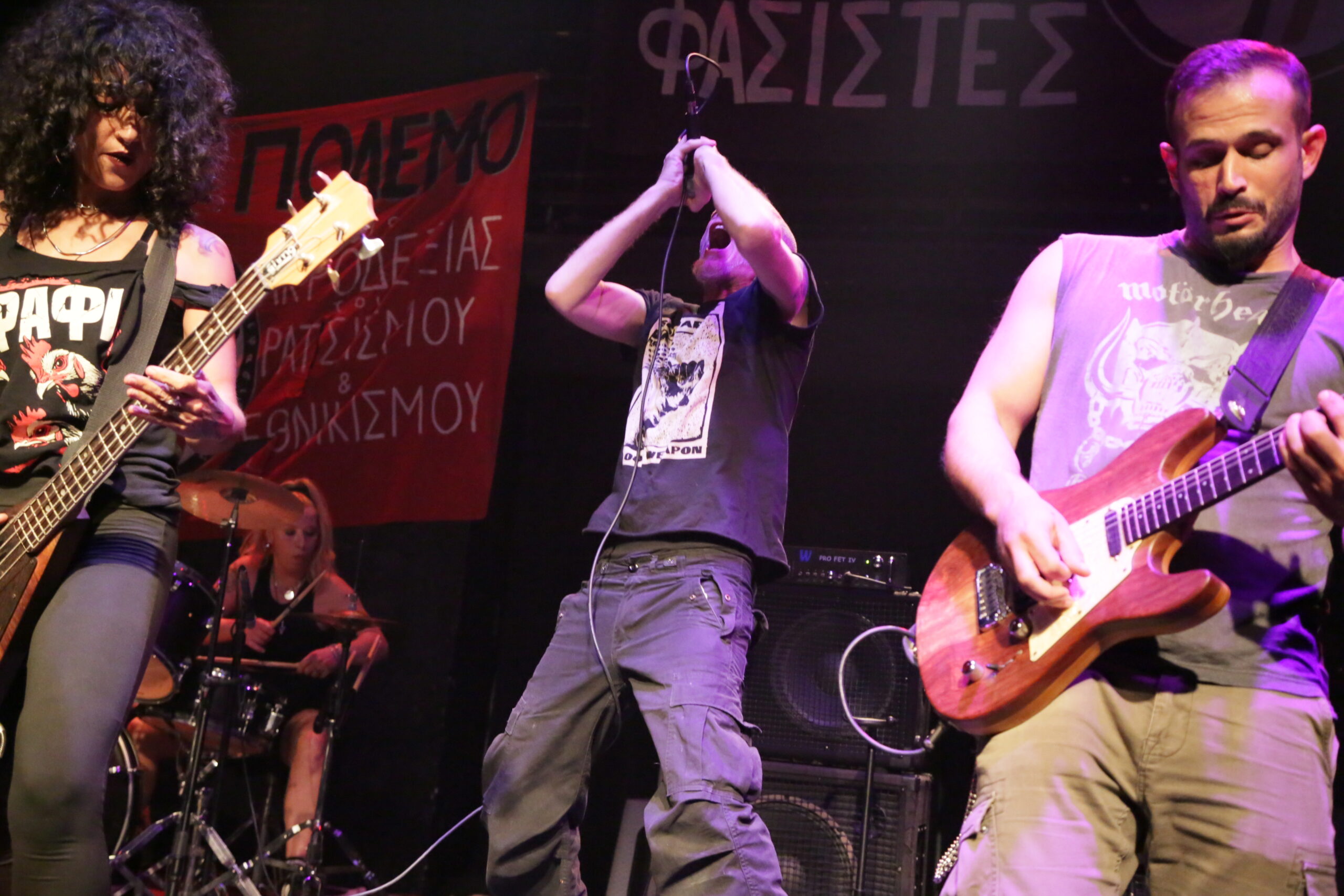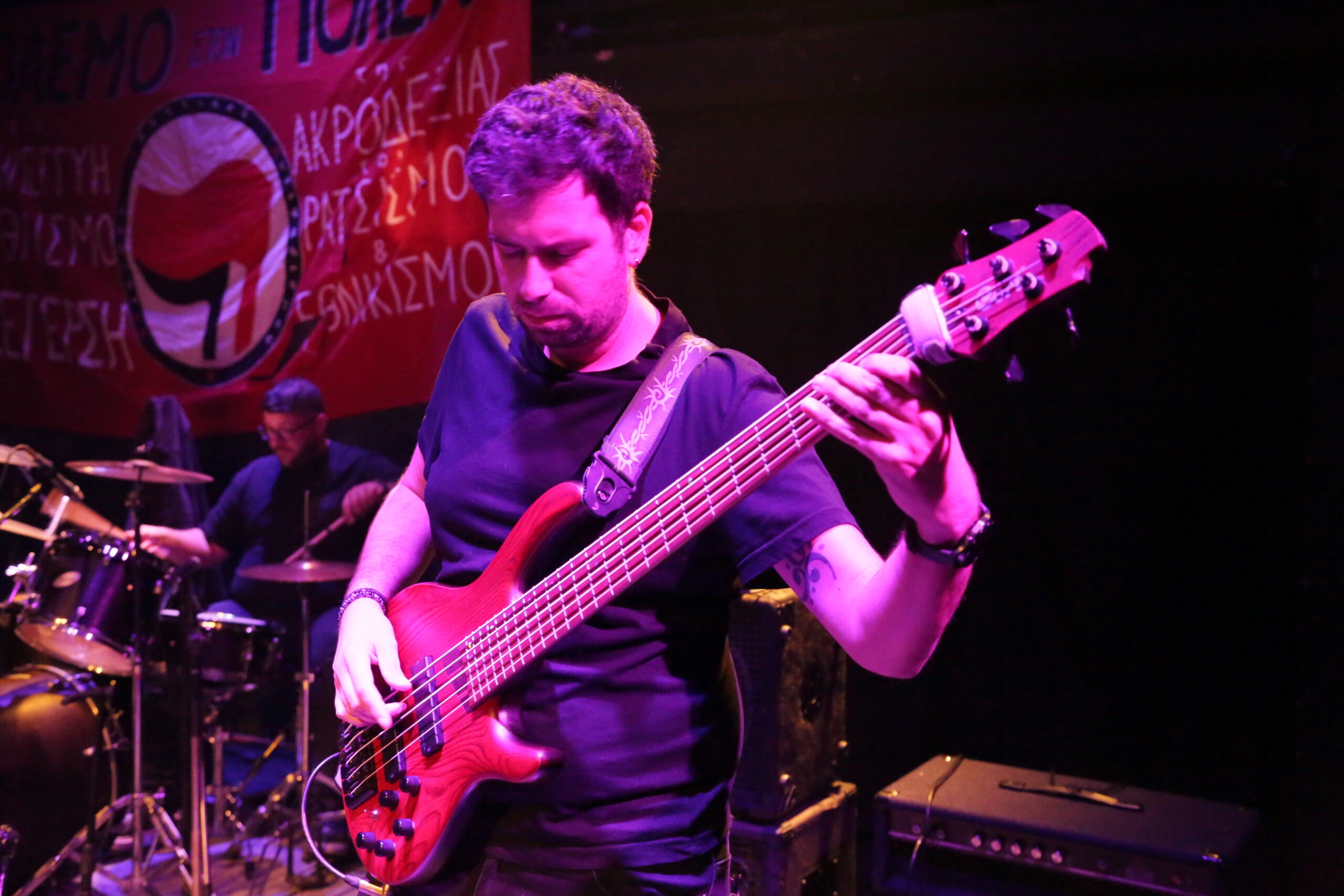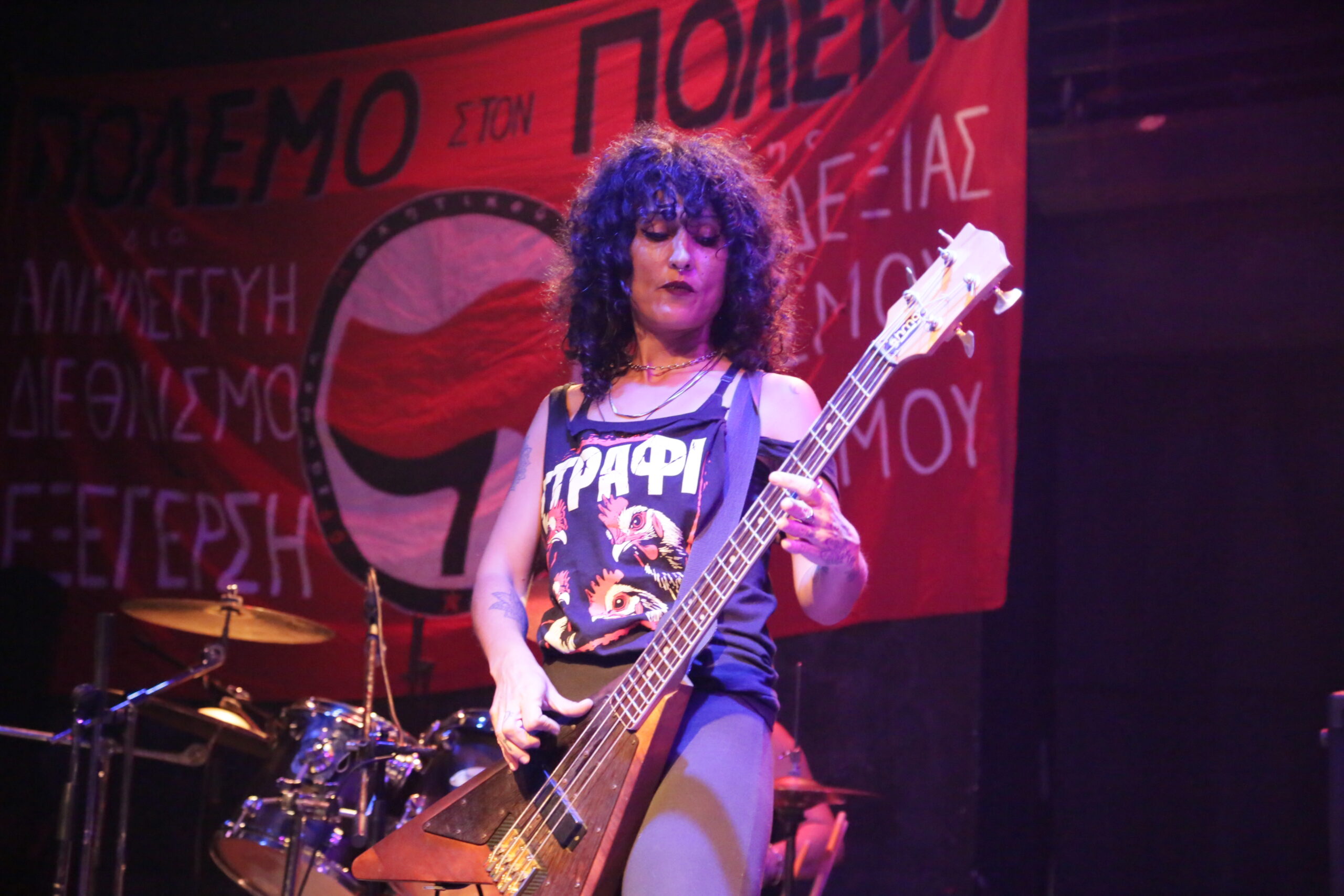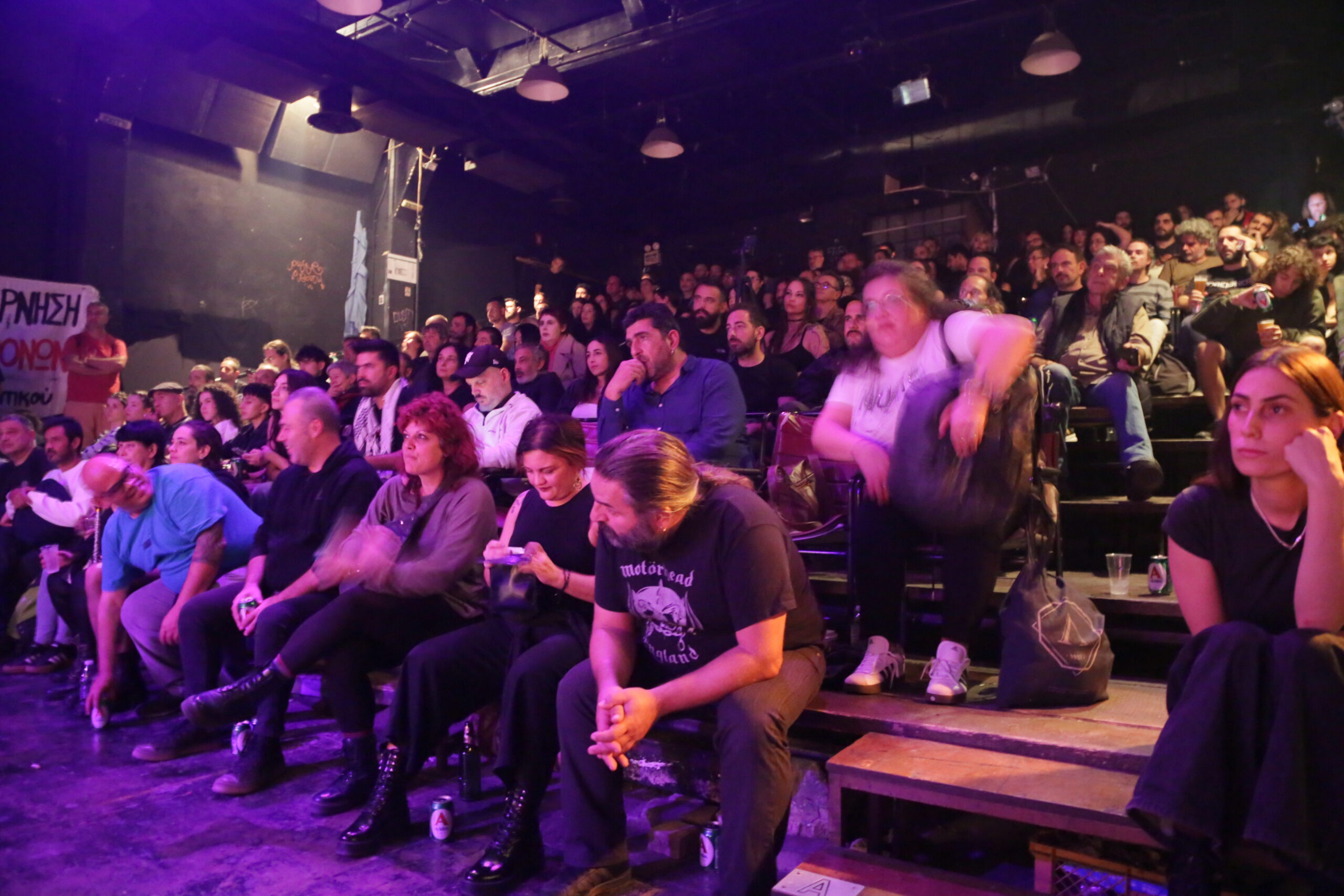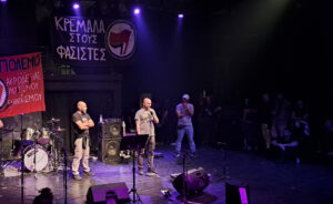 Ανάμεσα στο μουσικό πρόγραμμα, σύντροφοι και συντρόφισσες έκαναν σύντομους χαιρετισμούς – ανακοινώσεις για τις δίκες αλλά και τους αγώνες που δίνουμε αυτή την περίοδο. Αγωνιστές που τσάκισαν φασιστική ενέδρα και διώχθηκαν από το κράτος αλλά τελικά αθωώθηκαν έδωσαν μια έστω μικρή εικόνα από την αντιφασιστική νίκη. Αγωνιστές και αγωνίστριες που διώχθηκαν για απείθεια σε αστυνομική απαγόρευση αλλά βγήκαν νικητές με αθώωση από τα δικαστήρια επίσης πρόταξαν την δυνατότητα να σπάνε οι απαγορεύσεις και να ενδυναμώσουμε ένα κίνημα κόντρα στην καταστολή. Επίσης, τονίστηκε η κρισιμότητα της γενοκτονίας στη Γάζα και η ανάγκη για μια διεθνιστική αντιπολεμική στρατηγική από το κίνημα στη χώρα μας που θα σταθεί στο ύψος των περιστάσεων και έμπρακτα αλληλέγγυο στην παλαιστινιακή αντίσταση. Τέλος, η δυναμική του να κυνηγήσουμε πρωτοπόρους αγώνες που ευθυγραμμίζονται με εξεγερτικές κινήσεις της εργατικής τάξης σε άλλες χώρες και να παλέψουμε για την ανατροπή της Νέας Δημοκρατίας που κυβερνά μέσα από σκάνδαλα και δολοφονίες.