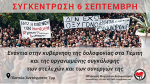 Το Σάββατο 6/9 στις 7μμ στην πλατεία Συντάγματος διαδηλώνουμε ενάντια στην κυβέρνηση της Νέας Δημοκρατίας – της συμμορίας των σκανδάλων και των δολοφόνων!
